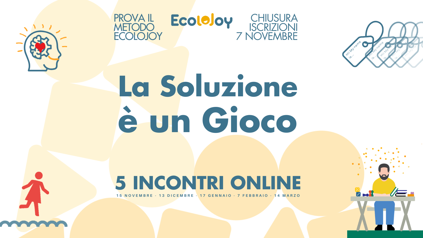 Attraverso 5 incontri online, affrontiamo 4 problemi concreti con 4 soluzioni giocose (+1):